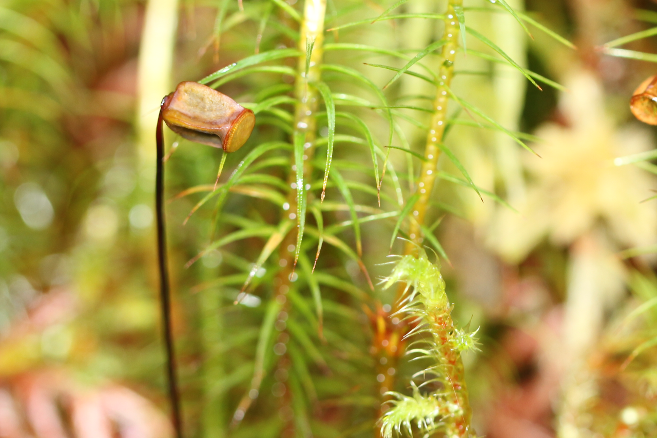 If you’re ready for a bit of science… the capsule is the little bulbous bit on the end of the stalk that you can see in this picture. It produces spores, and is part of the life-cycle of a moss called a sporophyte. The other bit, the green spiky moss-like bit, is called the gametophyte.